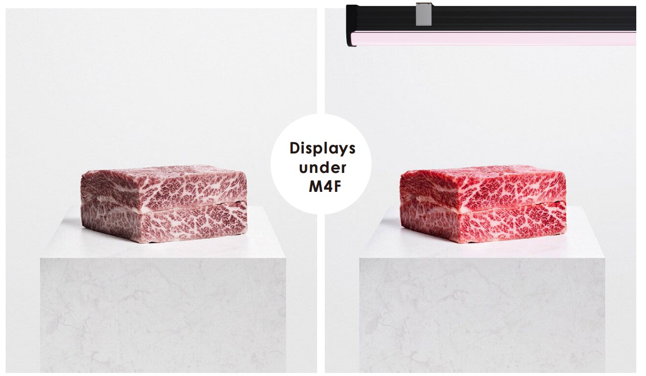 M4 ultra incə zolaq işığına əsaslanaraq,FanxstarXüsusi olaraq supermarketlərdə ət bölməsi üçün spektrli 4000k + 6500k + qırmızı 660nm olan bir spektr etmək üçün işıq mənbəyinə düzəliş etdi. Bu ət işıq spektrinin işıqlandırılması altında, supermarketlərdə satdığımız ət şirəçəkən və təravətli görünə bilər, bununla da ət satışını artıra bilər.