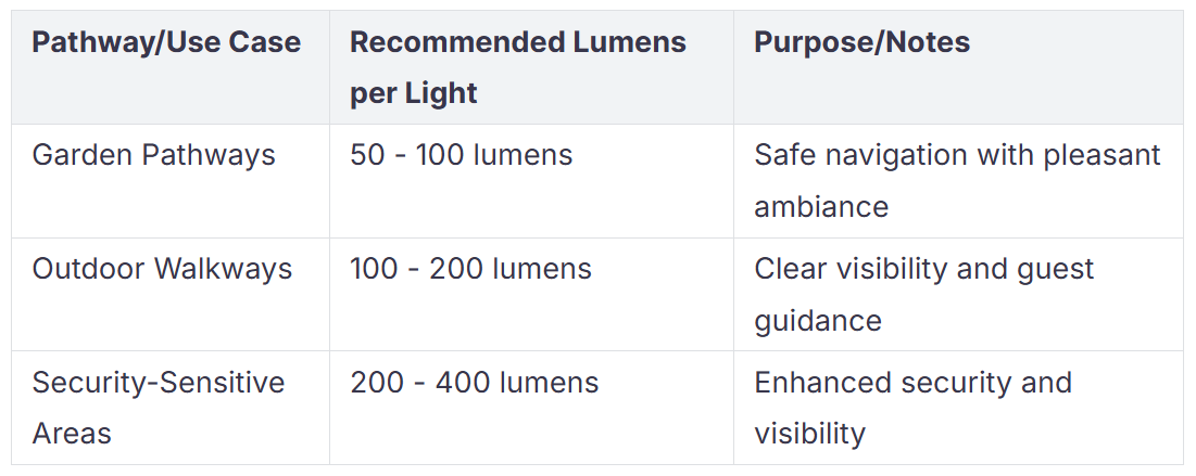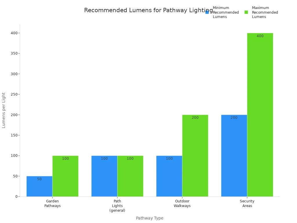 Çöldə təhlükəsiz yolların olması vacibdir. Yolların işıqlandırması insanlara hara getdiyini görməyə kömək edir. Ayrıca səfərləri və düşür. Bağ yolları üçün, 50-100 lümen ilə işıqlardan istifadə edin. Yol yollarına yaxşı işıq üçün 100-200 lümen lazımdır. Daha çox təhlükəsizlik istəyirsinizsə, hər işıq üçün 200-400 lümen istifadə edin. Hətta işıq üçün açıq bir LED işıqları 6-8 fut ayrı qoyun. Dar yollar bir-birinə daha yaxın işıqlara ehtiyac duyur. Geniş yollar daha da işıqlar daha da uzaqlaşa bilər. Yerdən təxminən 14 düym yuxarı işıqlar yerləşdirin. Bu birbaşa şüa verir və yolun gözəl görünməsinə səbəb olur.